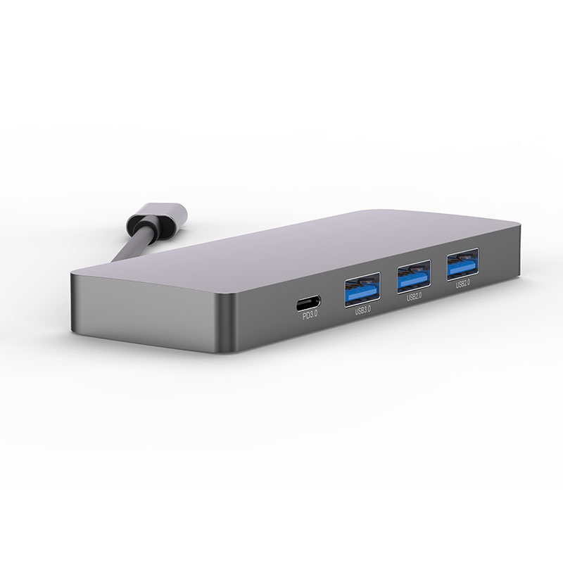 5IN1 Type-C dock 1* HDMI, 4K/30HZ 1*PD 2.0 2*USB2.0, 1*USB3.0 Cable : 6cm Materia: Aluminum; Size: 110*40*11mm; Weight: 68g