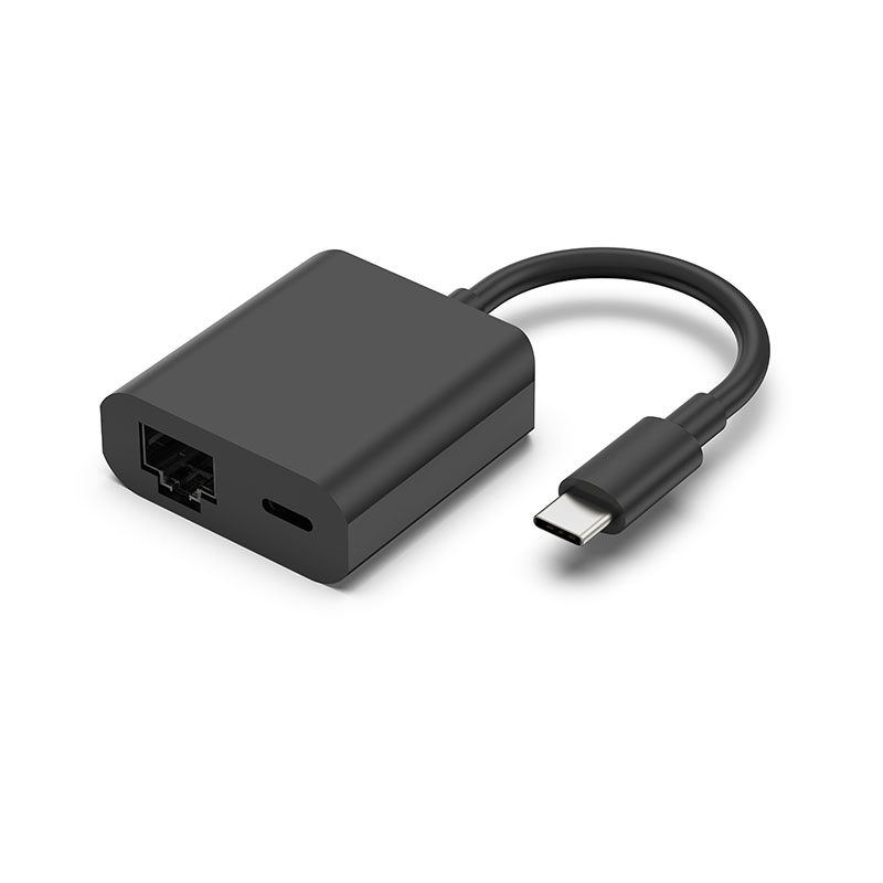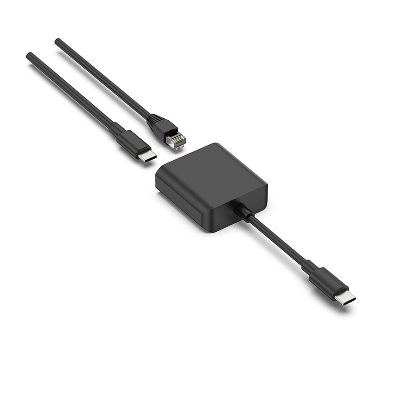 2.5G USB CLAN Adapter USBC3.1to: RJ45 port:2.5G(2500Mbps)more fasterthan 1000Mbps; USB C PD port:support up to 100Wpower delivery to charge your PC. Material:Abs plastic Size:40*38.5*15mm,cable length:11cm Weight:18g Color:black/OEM