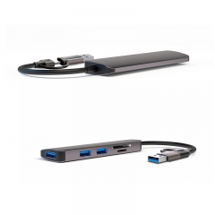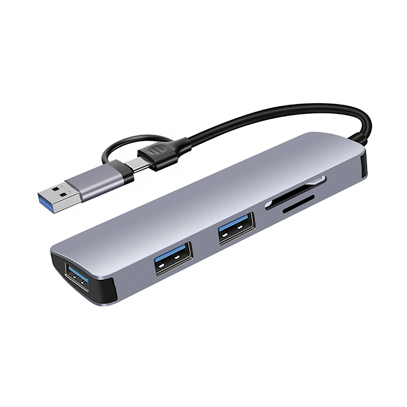 5IN1 USB C HUB Dual Input : USB C/USB A Output: 3* USB3.0 + SD/TF CARD READER Size : 104*31*11mm Weight: 47g Case:Aluminum Cable : 13cm